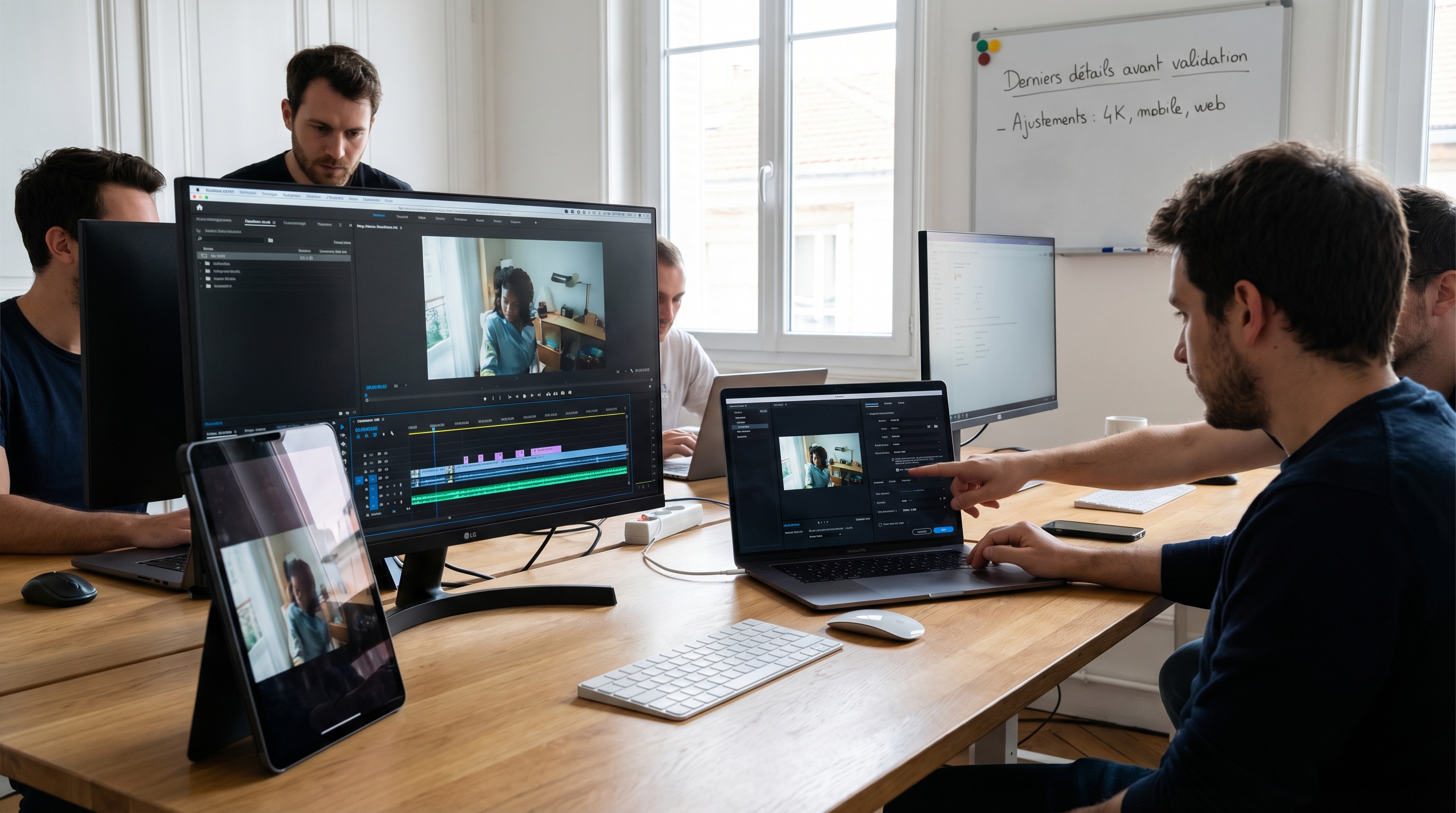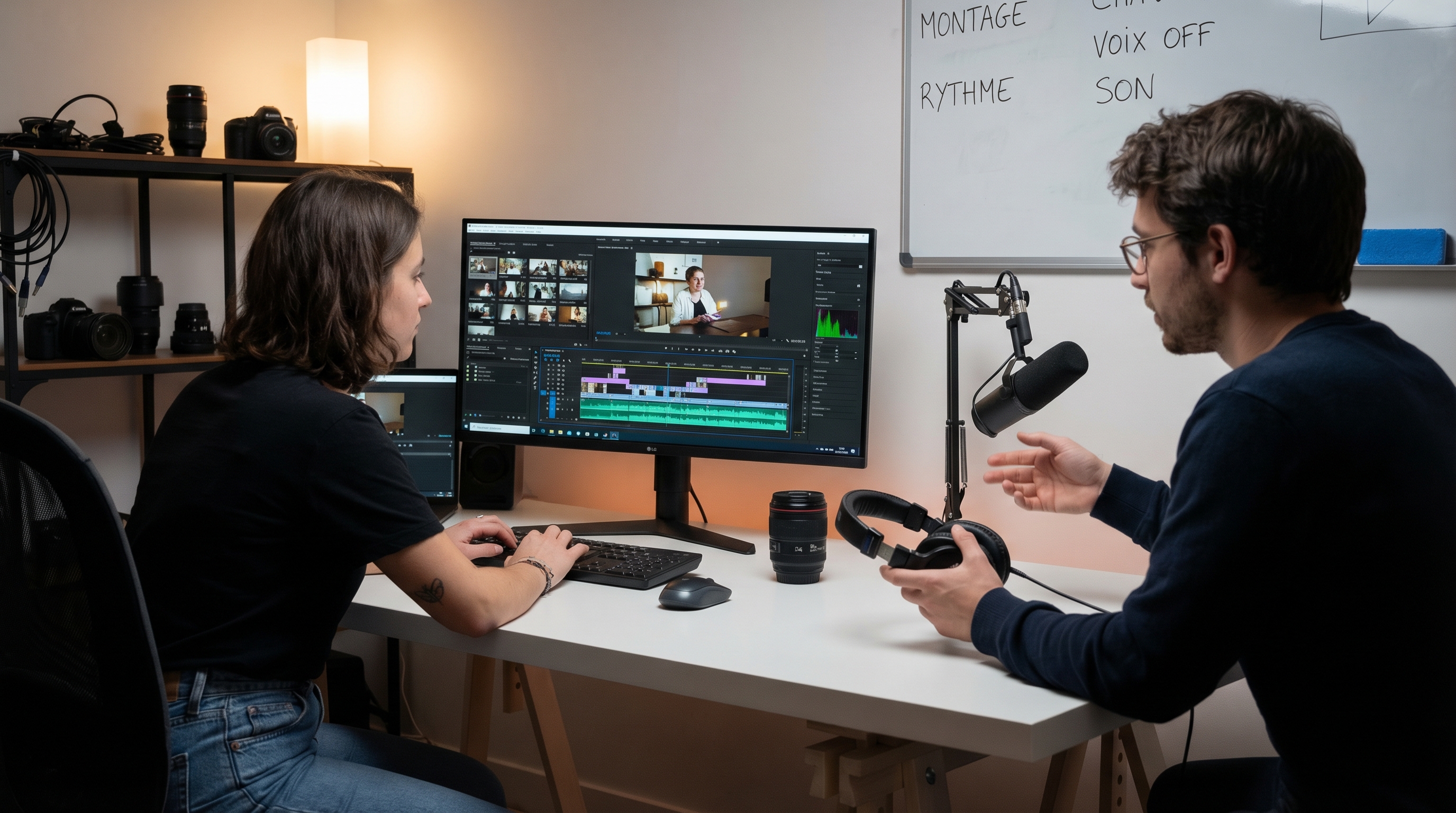 Nous travaillons le montage, le rythme, la voix off, le son, les textes et les finitions, tout en définissant aussi le casting, les décors et la mise en scène pour créer une vidéo claire, fluide et impactante.